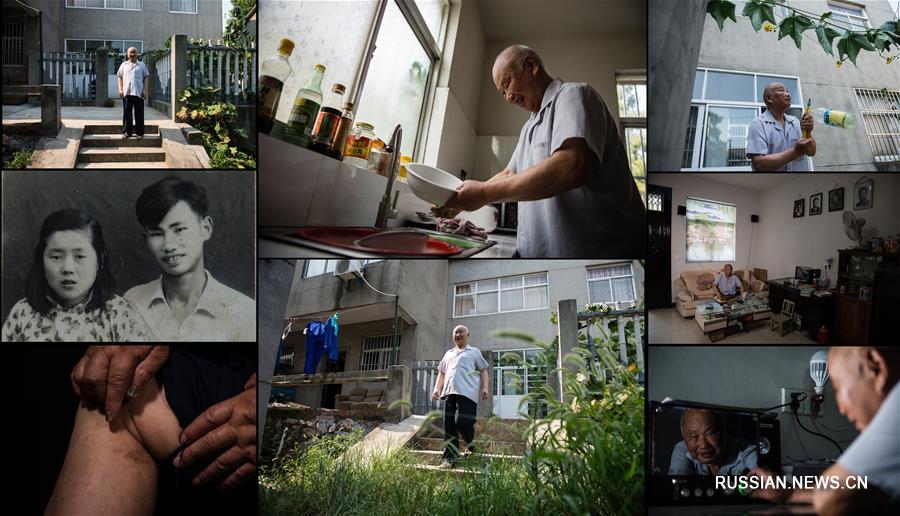 На фото -- Лю Миньшэн, который был тяжело ранен японцами, атаковавшими мальчика в возрасте 3 лет со штыками. Отец Лю был взят в плен. Фотографии Синьхуа