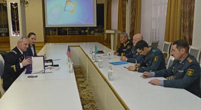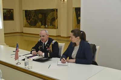В Национальном военно-патриотическом центре Вооруженных Сил РК состоялась встреча первого заместителя министра обороны - начальника Генерального штаба ВС, генерал-лейтенанта Мурата Майкеева с военным атташе Соединенных Штатов Америки в РК, полковником Дэвидом Уайзманом.