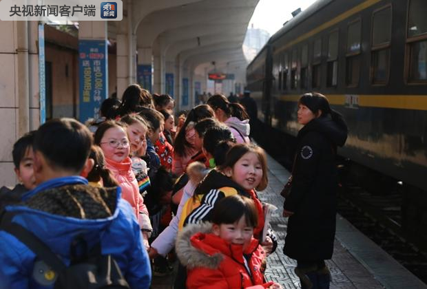 На вокзале Люэян дети встали в очередь перед тем, как выйти с вокзала.
