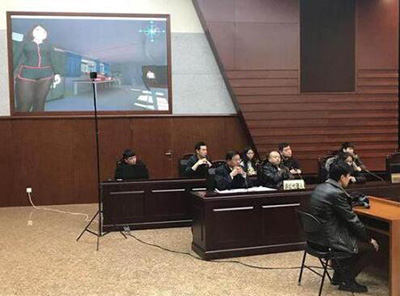 В ходе судебного разбирательства свидетель-очевидец по фамилии Дун в очках виртуальной реальности перемещался по визуальной комнате, где произошло убийство, и описывал словами то, что он увидел на месте происшествия. Затем обвинитель Чжао Пэн показал зрителям запись показаний другого свидетеля, делая замечания к записи на сенсорном экране рукой.