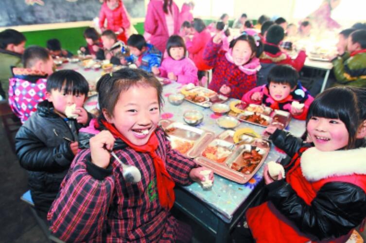 Столовая в провинции Аньхой для детей, оставшихся без родительского надзора, где дети с радостью обедают. Источник фото: Сайт ?Жэньминьван?