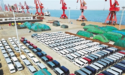 5 марта, в порту Ляньюньган в провинции Цзянсу пассажирские автомобили китайского производства ожидают загрузку. За январь и февраль 2018 года грузооборот Ляньюньгана составил 39,33 млн тонн и увеличился на 4% в годовом исчислении.
