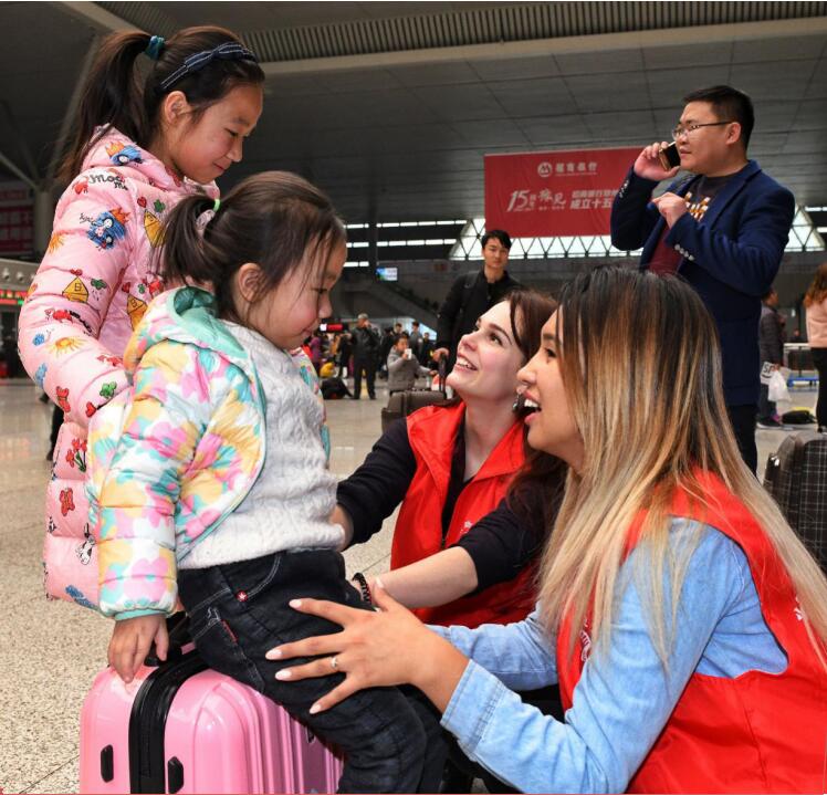 Во время ?Чуньюнь? иностранные волонтеры оказывают помощь пассажирам. Фото: ?Жэньминь тупянь? У Цзицюань