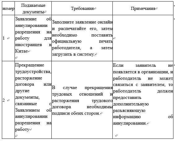 7. Заявление на отмену разрешения на работу для иностранцев в Китае