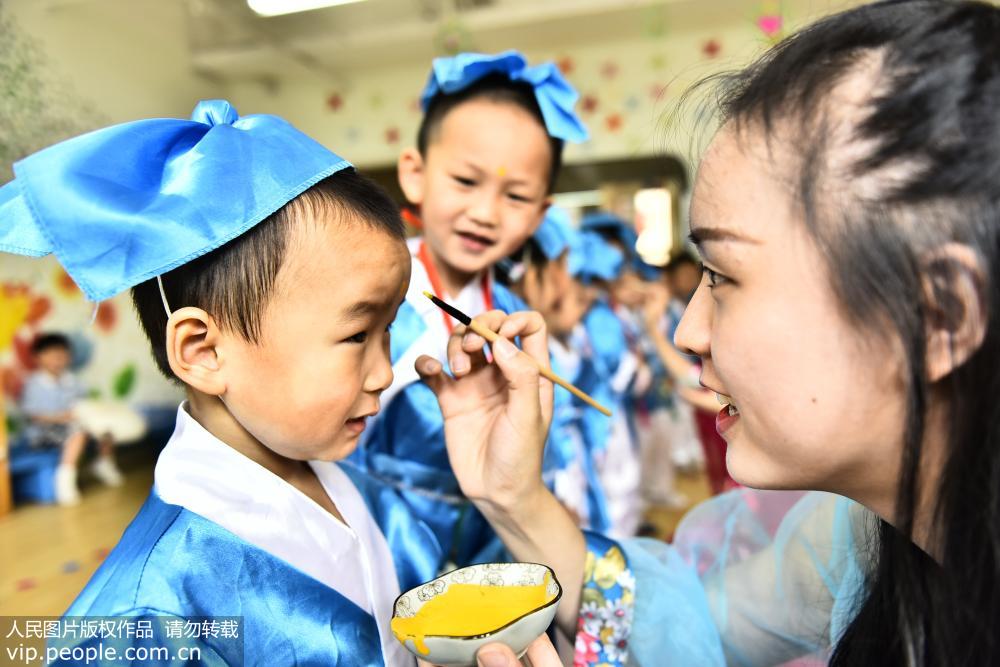 11 июня, в провинции Аньхой в детском саду воспитатели в национальных костюмах развешивают мешочки с благовониями и обучают детей традициям праздника Дуаньу.