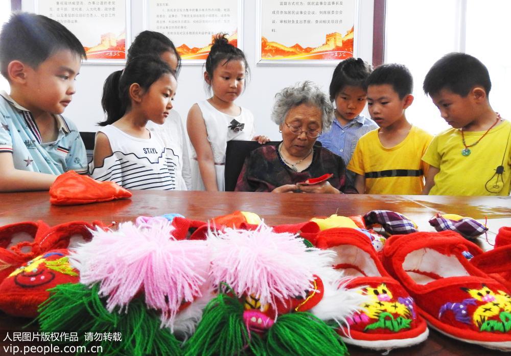 11 июня, в провинции Цзянсу в детском саду детей учат изготавливать мешочки для благовоний и обувь с тиграми.
