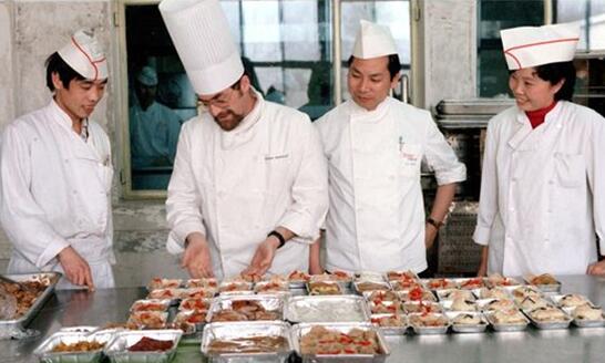 Повара пекинской компании BeijingAirCatering вместе изучают блюда для бортового питания (фото сделано в мае 1986 года). 10 апреля 1980 года официально было учреждено первое в КНР предприятие на китайско-зарубежном капитале – BeijingAirCatering.