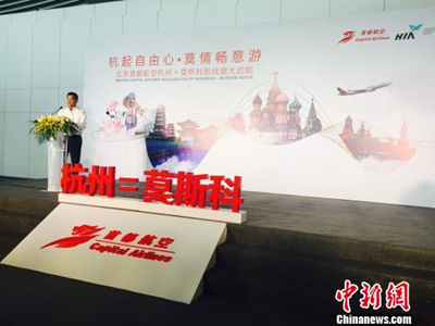 31 июля, ?Жэньминь жибао? онлайн -- 30 июля церемония открытия авиатрассы Ханчжоу – Москва компании ?Capital Airlines? состоялась в зале международного аэропорта Сяошань города Ханчжоу. Председатель компании ?Capital Airlines? У Чунъян объявил, что прямой рейс Ханчжоу – Москва будет запущен 31 июля.