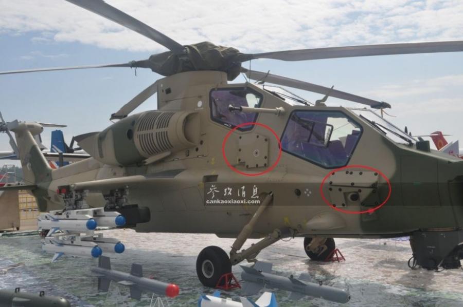 На боку с двух сторон кабины WZ-10ME также установлена дополнительная броня для защиты вертолета.