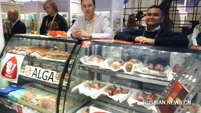 Россия представляет свою продукцию на выставке в качестве страны-партнера, общая площадь российских выставочных стендов превышает 2200 кв. м. На самом большом стенде, принадлежащем Российскому экспортному центру /РЭЦ/, высоко висит транспарант с надписью крупными буквами: Made in Russiа /Сделано в России/.
