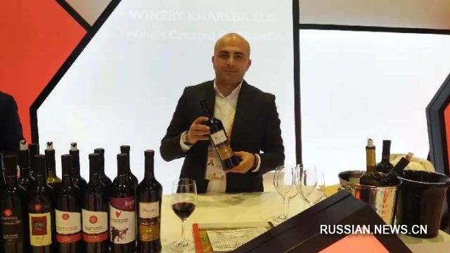 На импортном ЭКСПО выставочные стенды Грузии привлекают ароматом виноградного вина. (Синьхуа/Жэнь Жуйэнь)