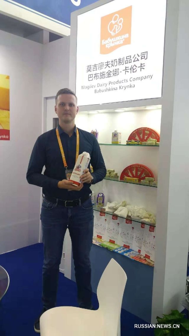 Известная белорусская молочная компания "Бабушкина крынка" привезла на выставку более десяти наименований молочной продукции. (Синьхуа/Жэнь Жуйэнь)