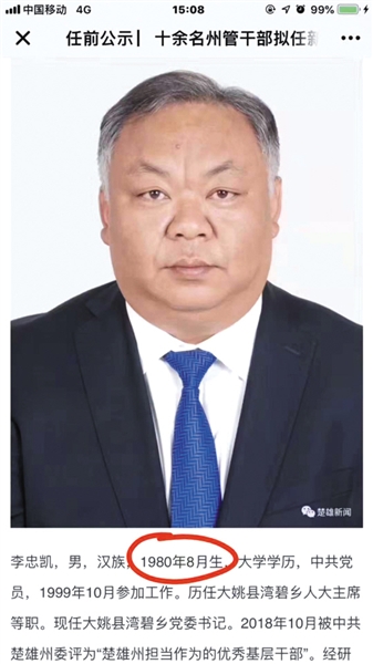 На днях администрация Чусюн-Ийского АО заявила, что по итогам проверки личного дела и данных Ли Чжункая достоверность фотографии и года рождения была полностью подтверждена.
