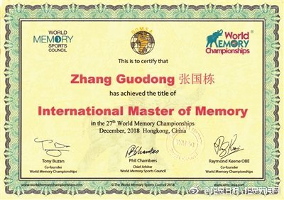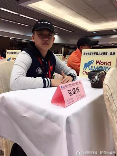 9 января, ?Жэньминь жибао? онлайн -- 22-летний Чжан Годун из города Янцюань провинции Шаньси выиграл финал 27-го Чемпионата мира по памяти, обогнав 269 соперников из других стран. Чжан правильно запомнил 1260 случайных чисел за час, 12 колод карт за час, одну колоду карт за 74 секунды и заработал 3448 общих баллов, за что получил звание ?Мастера мира по запоминанию?.