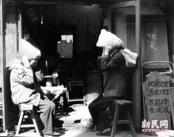 Канун Праздника Весны в 1979 году, вход в парикмахерскую на улице Нанцзиндун в Шанхае. Две женщины сидят на скамейках и делают химическую завивку волос. Несмотря на то, что тогда в одежде китайцев преобладали монотонные цвета, а именно синий, серый и белый, любовь и стремление к красоте исходили из сердца.