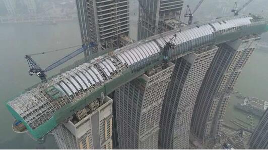 В китайском городе Чунцин скоро закончит строительство первый в мире горизонтальный небоскреб. Он называется горизонтальным, так как среди 8 вертикальных небоскребов один находится в горизонтальном положении. Здание длиной более 300 м соединяет четыре небоскреба на высоте 60-го этажа, а сам ансамбль зданий выглядит как парус.