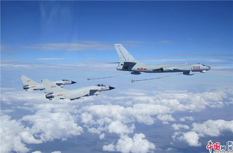 28 июля 2014 года, самолеты ВМС НОАК проводят заправку в воздухе.