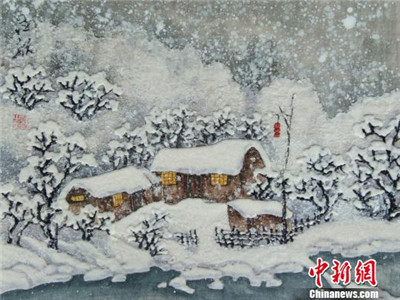 13 мая, ?Жэньминь жибао? онлайн -- С помощью пищевой соли в сочетании со смолой можно рисовать картины. В мастерской художника Ван Хан из уезда Чжансянь города Динси провинции Ганьсу на стенах развешено много картин со снежными пейзажами, где листья, дороги, крыши, поля покрыты снегом, а снег является пищевой солью.