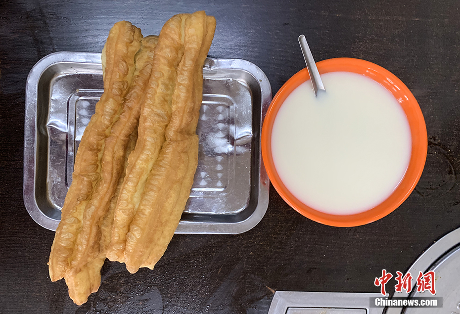 Соевое молоко и жареные полоски из теста