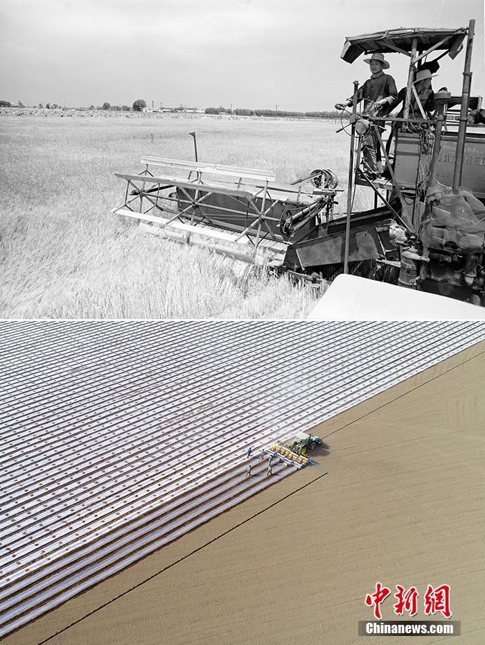 В 1965 году, урожай в пригороде Пекина, где работает уборочная машина