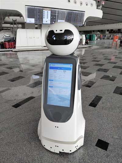 Являясь частью системы обслуживания пассажиров, виртуальные роботы-помощники представляют собой модернизированную версию прежних интеллектуальных голосовых роботов. Они обеспечивают прием пассажиров, предоставляют им справочную информацию, бизнес-консультации и другие услуги. Кроме того, виртуальные роботы также могут общаться с пассажирами посредством голоса. С помощью роботов пассажиры имеют возможность легко получать информацию о рейсах, предполетных процедурах, услугах и объектах инфраструктуры аэропорта и т. д. Стоит отметить, что робот способен точно определять местонахождение посетителей и указывать им оптимальный путь до необходимого места.