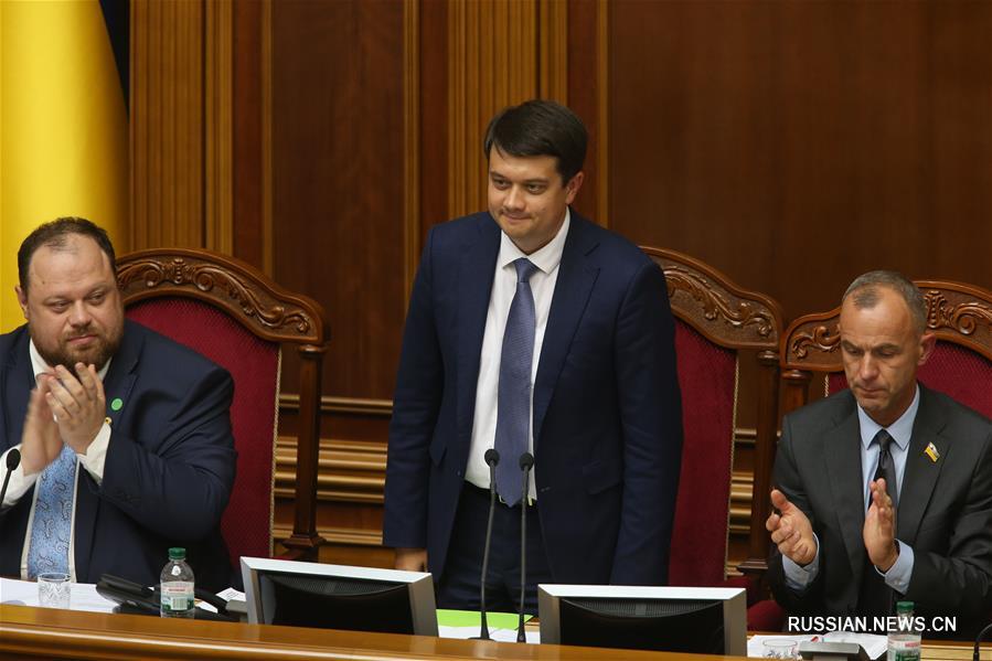 Киев, 1 сентября /Синьхуа/ -- 29 августа, в первый день работы Верховной Рады нового созыва, на должность премьер-министра был избран Алексей Гончарук. Его кандидатуру предложил президент страны Владимир Зеленский. Парламентарии поддержали такое решение, отдав 290 голосов за его кандидатуру. Председателем Верховной Рады был избран депутат от партии "Слуга народа" Дмитрий Разумков, его поддержало подавляющее большинство депутатов. Первым вице-спикером Верховной Рады Украины IX созыва стал представитель президента Украины в парламенте, народный депутат от партии "Слуга народа" Руслан Стефанчук. Фотографии Синьхуа/Сергей Старостенко