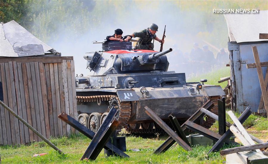Минск, 8 сентября /Синьхуа/ -- На территории историко-культурного комплекса "Линия Сталина" недалеко от столицы Беларуси состоялась военно-историческая реконструкция боев под Сенно 1941 года. Военно-исторический клуб "Солдаты Победы" и оригинальная боевая техника 1930-1940 годов воссоздали перед зрителями картину сражений Великой Отечественной войны. Фотографии Синьхуа/Геннадий Жинков