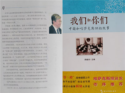 В 2014 году, редактируя книгу ?Мы и Вы: истории о Китае и Казахстане?, я отправил письмо Токаеву, старому другу, с просьбой написать предисловие. Он сразу же согласился и написал содержательное предисловие в шесть страниц. Токаев отметил, что исторически Шелковый путь был торговым каналом, а на самом деле, он стал первым глобальным проектом, который соединяет западную и восточную человеческие цивилизации. Инициатива экономического пояса Шелкового пути, которую выдвинул председатель КНР Си Цзиньпин во время визита в Казахстан, является крайне важной, обладает стратегическим значением. За небольшой период установления дипломатических отношений Казахстан и Китай создали образцовые межгосударственные связи. ?Бывшие послы КНР в Казахстане являются моими друзьями, они внесли важный вклад в развитие дружбы и сотрудничества между двумя странами, Казахстан искренне благодарит их. Данная книга – это яркая демонстрация дружбы между народами наших государств. Не сомневаюсь, что ее многочисленные читатели смогут почерпнуть в ней полезную информацию о наших дружественных государствах и сотрудничестве между ними?, - написал Токаев.