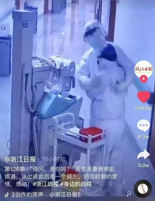 4 февраля в одной из больниц города Шаосин провинции Чжэцзян супружеская пара – врач и медсестра, которые не видели друг друга несколько дней, встретились в коридоре одной больничной палаты. ?Чэнь Бин??, ?Сяо Ци?? Супруги узнали друг друга по голосу и взгляду. Они указали друг на друга и обнялись. После непродолжительного, 20-секундного ?общения?, каждый вернулся к своей работе.