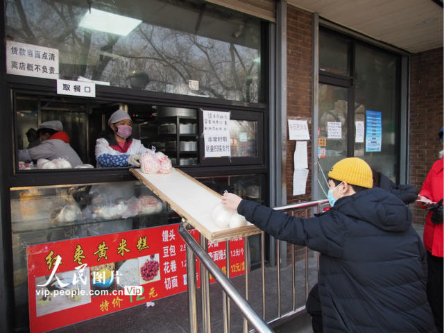 На фото: 19 февраля на улице Аньдинмэнь в Пекине продавец магазина выдает покупателям пампушки через окошко, чтобы соблюдать безопасную дистанцию. Мобильные платежи также приветствуются. Однако, есть способ расплатиться и наличными - положить их в черпак.