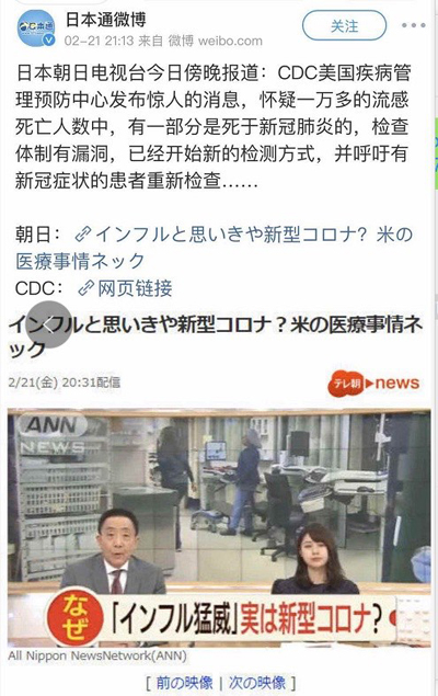 Далее эта новость быстро распространилась в китайских социальных сетях. С тех пор и до момента публикации в прессе в Вэйбо уже более 220 000 пользователей поддержали догадку, поскольку пост был опубликован вечером 21 февраля, и было получено более 14 000 комментариев, причем многие полагали, что COVID-19 мог прийти из США, и именно поэтому так много людей умерло в США из-за ?симптомов гриппа?.