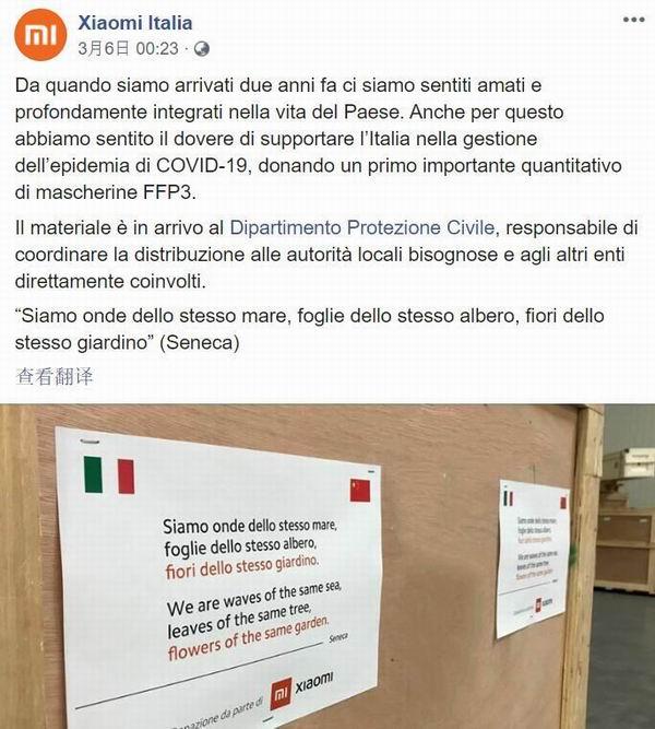 6 марта десятки тыс. масок, пожертвованных корпорацией ?Mi?, отправлены в Италию.