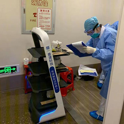 В-пятых, благодаря интеллектуальной системе автоматического общения роботы могут уменьшить непосредственный контакт между больными пациентами и медицинскими работниками. В больницах, принимающих большое количество пациентов с пневмонией, вызванной новым типом коронавируса, роботы широко используются в раздаче медикаментов, еды и предметов домашнего обихода. Кроме этого, они делают записи лечения, а также записывают в реальном времени процесс дезинфекции.
