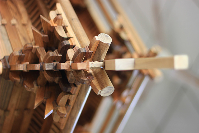 При проектировании конструкций в древности люди стремились равномерно распределять силу на каждый деревянный брус, в более сложных шиповых соединениях деревянный блок соединялся в разных направлениях и под разными углами. Это означает, что определенному деревянному блоку необходимо было выдерживать силу с разных сторон. Таким образом, можно было экономить на материале, а также гарантировать прочность конструкции, в этом выявлялась концепция древних людей о ?единстве природы и человека?.
