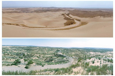 Ван Юдэ, первый исследователь борьбы с опустыниванием в Нинся, в течение более 40 лет управлял сотнями кадров и работников, неустанно боролся с опустыниванием, благодаря чему в пустыне Му-Ус появилась широкая зеленая сеть, преграждающая ветра и песок, было остановлено движение песчаных земель Му-Ус на юг и запад, а также защищена река Хуанхэ и обширные плодородные поля на ее берегах.
