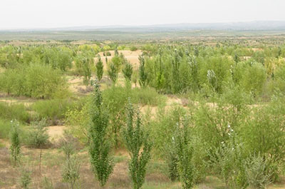 Бай Чуньлань, простая жительница этой местности, внесла свой огромный вклад преображение пустыни. В течение 40 лет она в общей сложности посадила около 100 тыс. деревьев и изменила пустыню площадью более 3800 му. На основе многолетнего исследования Бай Чуньлань создала ряд ?методов по управлению песками?, таких как преграждение песка травой, закрепление песка ивой, предупреждение образования песка посадкой деревьев и т. д., а также освоила в пустыне 40 му поливных полей.