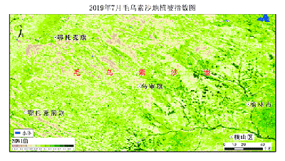 Схема вегетационного индекса пустыни Му-Ус в июле 2000 г. (Фото Государственного управления лесного и степного хозяйства Китая)