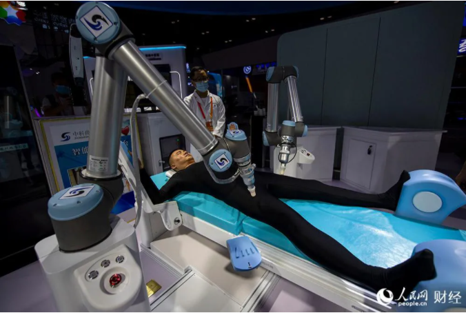 Робот делает массаж по традиционной китайской медицине в комплексной выставочной зоне Китайской международной ярмарки торговли услугами-2020. Фото сделано 4 сентября.
