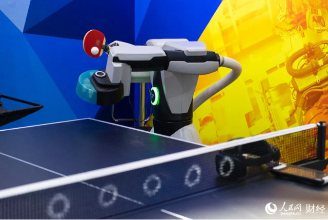 Робот для игры в пинг-понг автоматически подает мячи в комплексной выставочной зоне Китайской международной ярмарки торговли услугами-2020.
