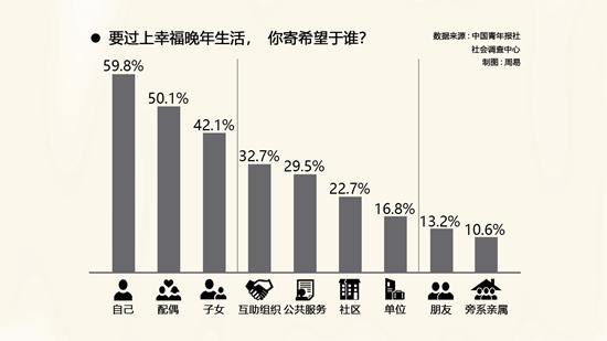 Недавно Центр социальных исследований газеты ?Циньняньбао? провел опрос 1217 молодых людей в возрасте от 18 до 35 лет, который показал, что 89,6% опрошенных молодых людей считают необходимостью начать заботиться о своей старости уже сейчас. Молодые люди планируют рассчитывать на себя, а также на своих супругов и детей в старости.