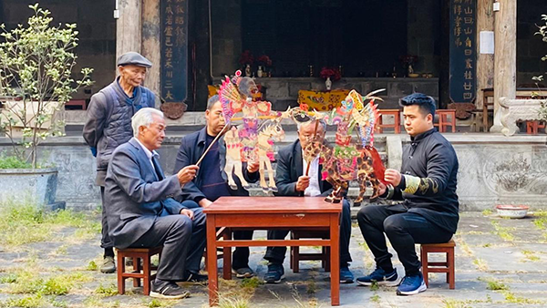 Представители-художники трех поколений деревни Люцзячжай демонстрируют театр теней
