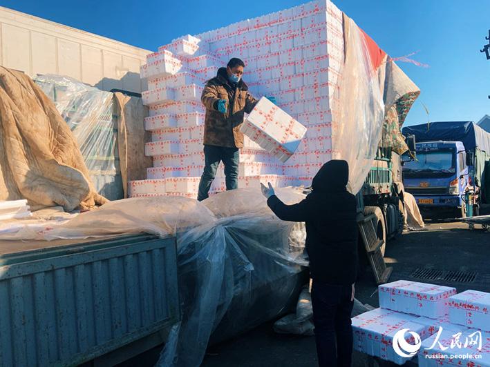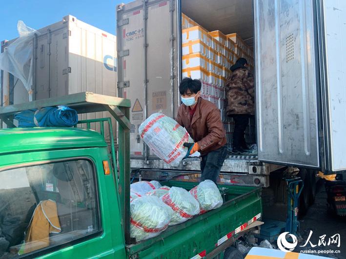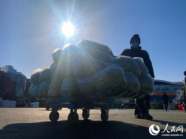 Продавцы грузят зеленые бобы, которые часто можно увидеть на столах китайских семей в зимнее время. Фото: корреспондент сайта ?Жэньминьван? Коу Цзе
