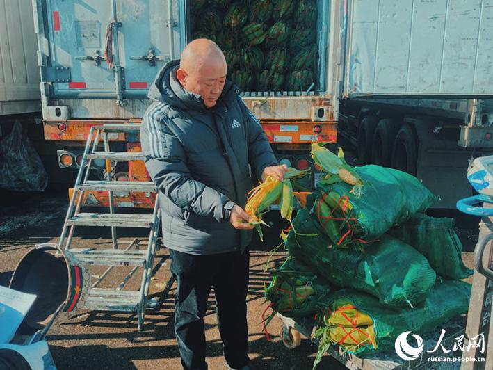 48-летний предприниматель Ли Чжунъюэ проверяет недавно собранную кукурузу. Фото: корреспондент сайта ?Жэньминьван? Коу Цзе