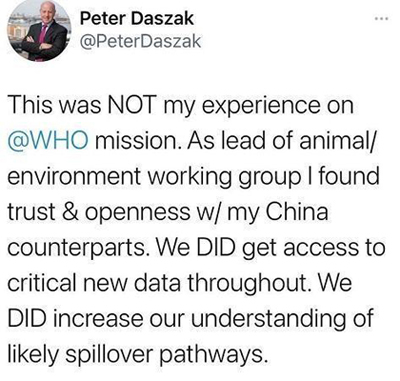 — Peter Daszak (@PeterDaszak) February 13, 2021
