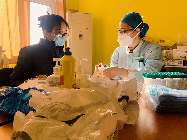 Обычно для группы тестирования необходимы два медицинских работника. Партнер Ван Лихуа – 26-летний Юй Сяои, доктор, работающий в больнице менее года. Приготавливая медицинское оборудование, Ван Лихуа поделилась своим опытом профилактики COVID-19 с Юй Сяои, помогая ему лучше понять этот вирус.