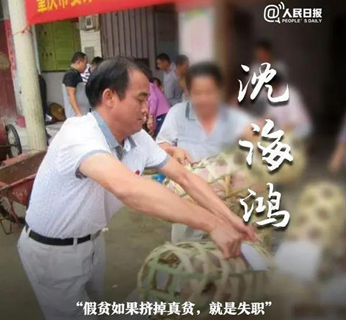Всего за шесть месяцев работы в деревне Ляньшэ уезда Хуайцзи провинции Гуандун Шэнь Хайхун смог узнать все о положении бедных семей. В 2016 году Шэн Хайхун погиб в автокатастрофе.