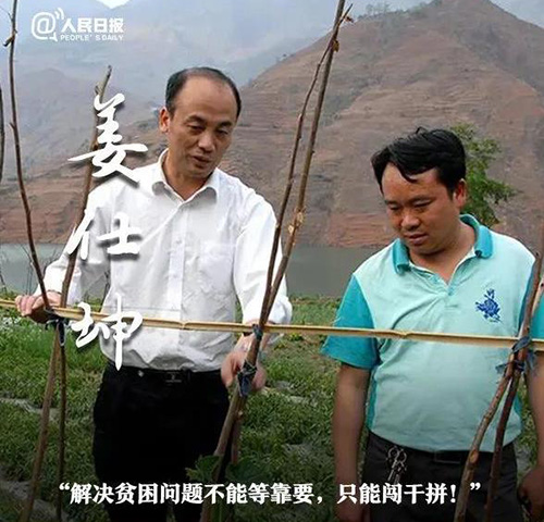 Секретарь парткома уезда Цинлун провинции Гуйчжоу Цзян Шикунь внезапно умер от сердечного приступа. За 6 лет он проехал 600 тыс. км, и благодаря его работе процент бедности в уезде Цинлун снизился с 52,2% до 25,1%. Однажды, возвратившись из деревни, он от усталости поднял ногу, чтобы немного передохнуть. Коллеги расхохотались: у него на подошве была большая дырка, которая обнажала ступню.