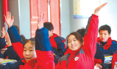 30 декабря 2020 года, дети сидят на уроке в комплексной школе пункта размещения переселенных из бедных районов жителей в уезде Лунхуэй г. Шаоян провинции Хунань.