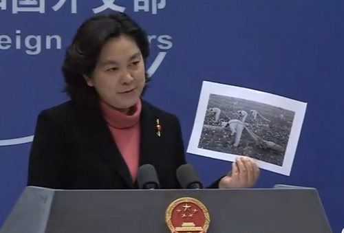 В ходе пресс-конференции Хуа Чуньин показала две фотографии, на одной из которых изображены афроамериканские рабы в США, вынужденные собирать хлопок, а на другой – механизированный процесс сбора хлопка в Синьцзяне. По мнению Хуа Чуньин, осуждения о принудительном труде в китайском Синьцзяне не соответствуют действительности.