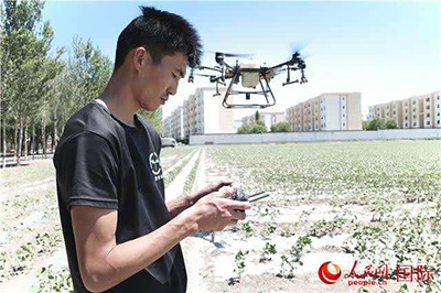 В двадцатых числах мая в уезде Юйли (Лоп-Нур) что в городе уездного уровня Корла в Синьцзян-Уйгурском автономном районе Китая стоит жаркая погода. На хлопковых полях семьи Туюйхуна Уцзи беспилотники распыляют пестициды на посевы хлопчатника.